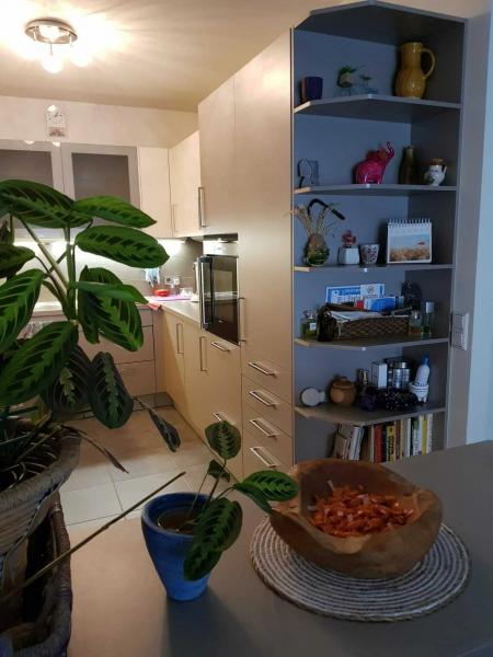 3ème étage) hall d'entrée, beau living avec accès direct vers terrasse idéalement orientée plein-sud, cuisine équipée (ouverte), espace stuff/bureau, WC séparé