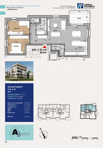 L'appartement B-2-07 de 88,21 m2 se compose comme suit: