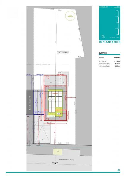 LOT 09: Maison unifamiliale en bande sur un terrain de 6,55 ares avec une surface habitable de +/- 131 m2 et une surface totale de +/-166m2 comprenant: